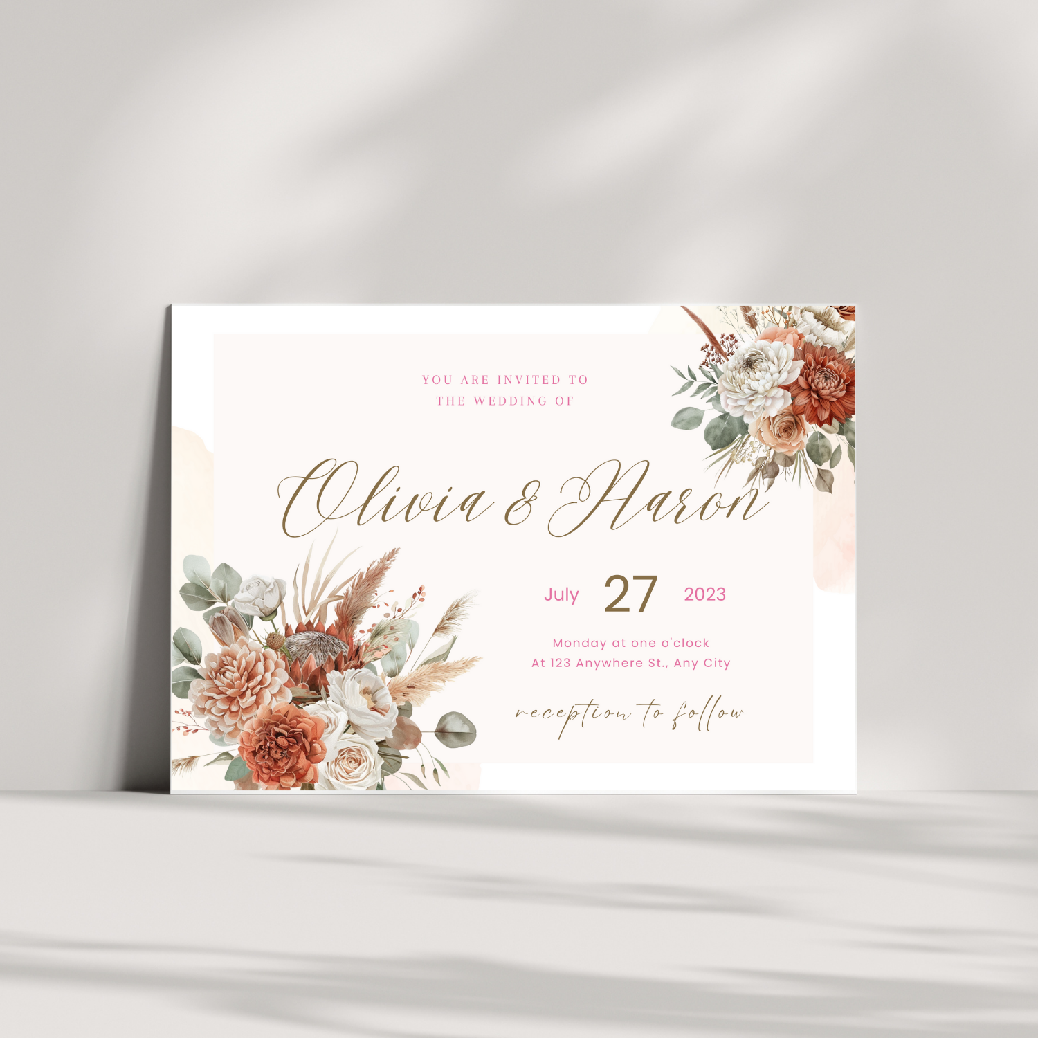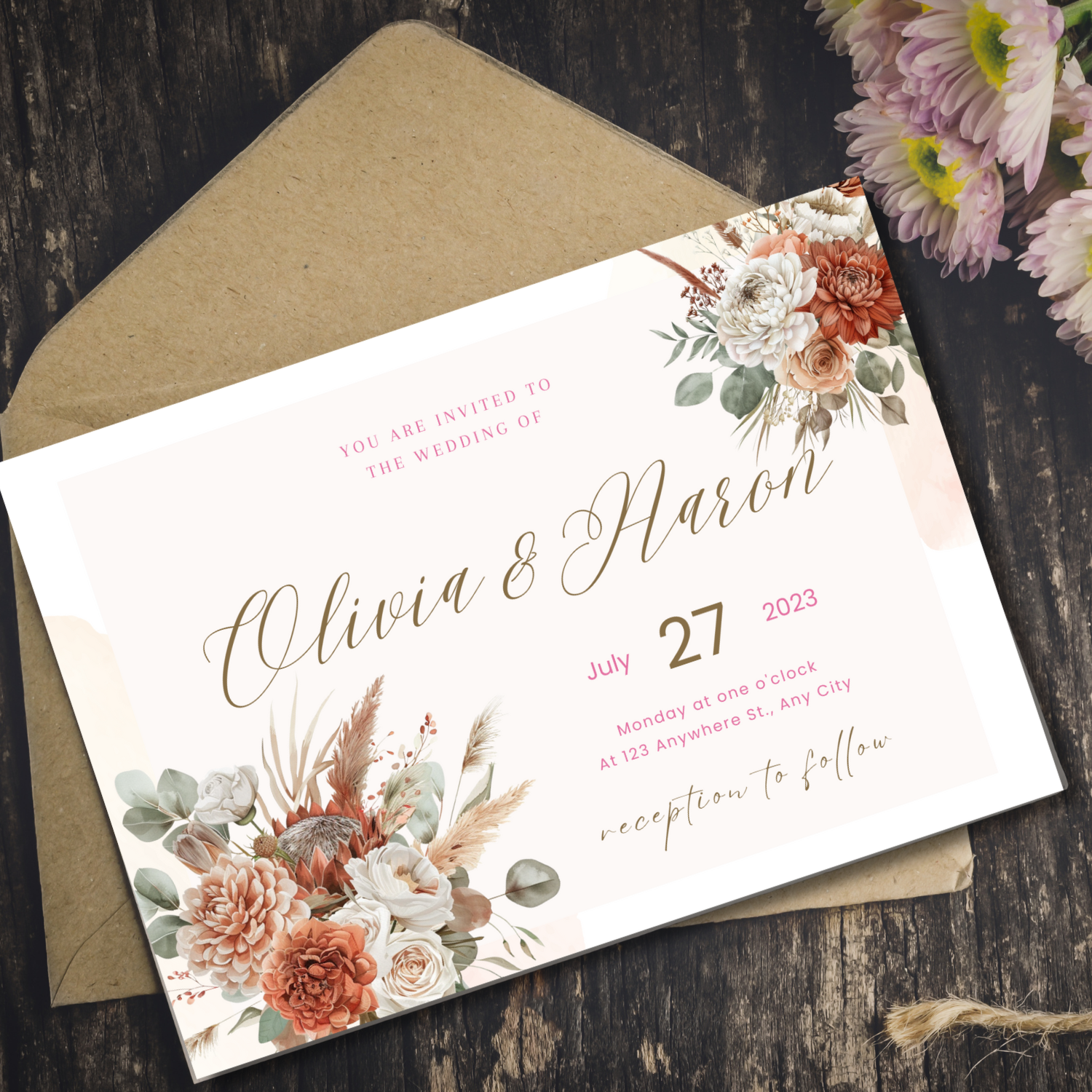 【個人利用OK】ボヘミアン 水彩画 秋のドライフラワー クリップアート《PNG・透過済み》結婚式、招待状、カード、カレンダー、ステッカー